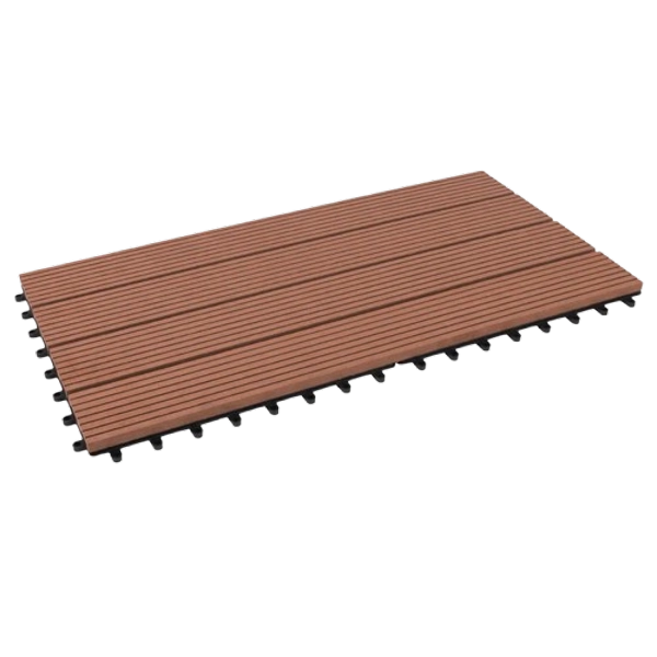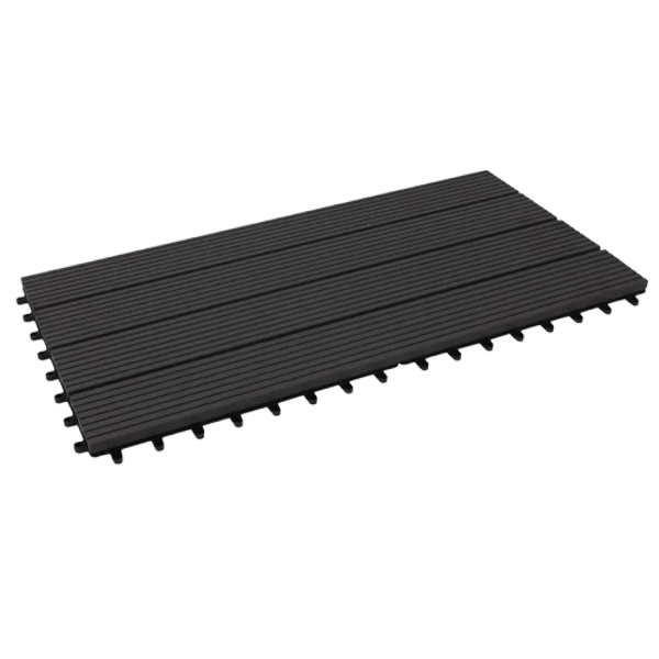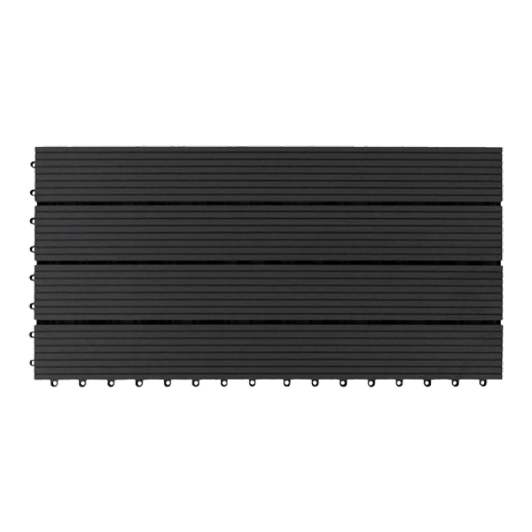 Durable, weather-resistant interlocking tiles in an elongated 30 × 60 cm format, perfect for patios, terraces, and balconies.