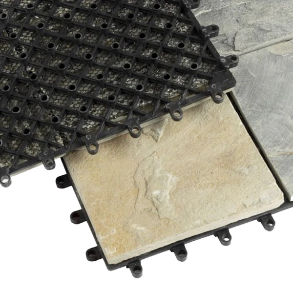 Create a refined outdoor finish with Classic Interlocking Decking Tiles in a natural stone look.