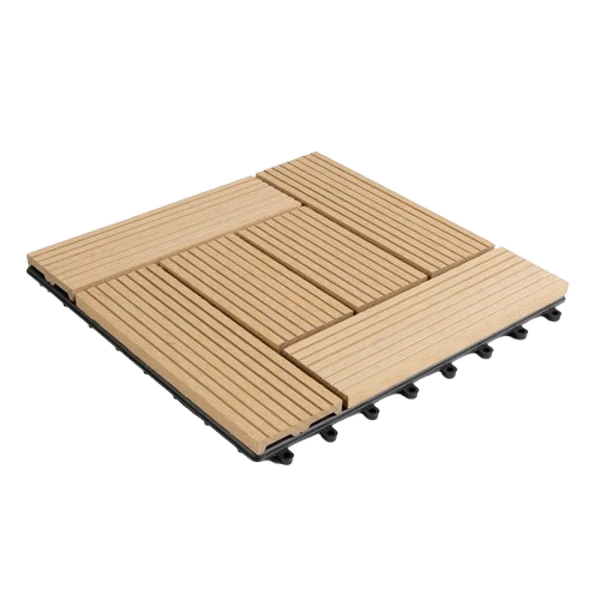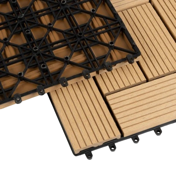 Transform outdoor spaces with Royal WPC Decking Tiles in Light Brown.