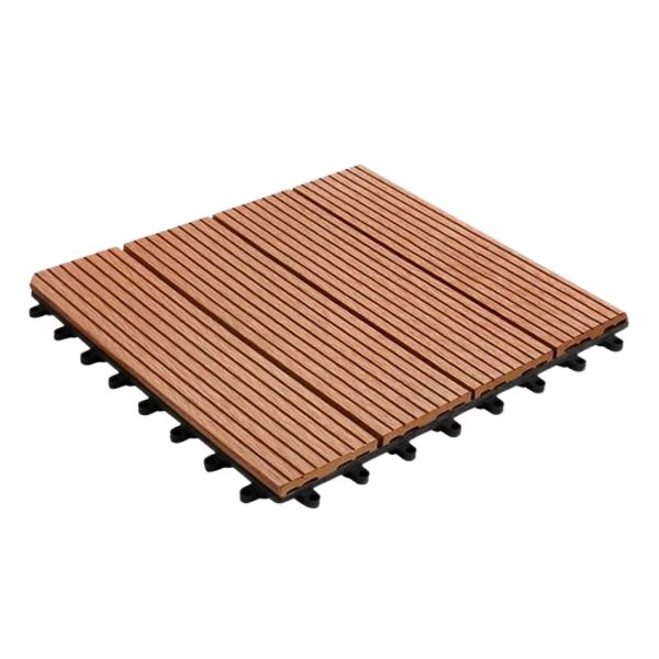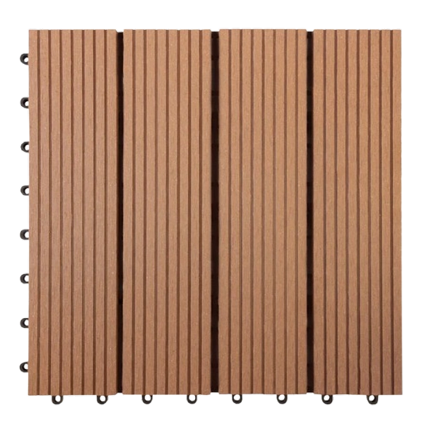 Bring natural warmth to outdoor spaces with Classic WPC Decking Tiles in Teak.